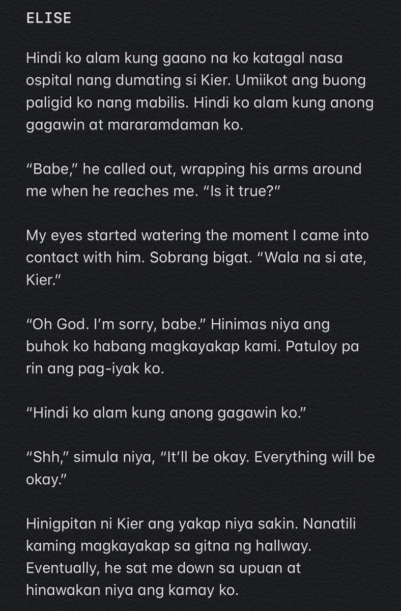 Dahil alam ko na patay na sya. I cooked for us nakangiting sabi niya. Lagi kong sinsabi sayo na mamahalin kita habangbuhay.