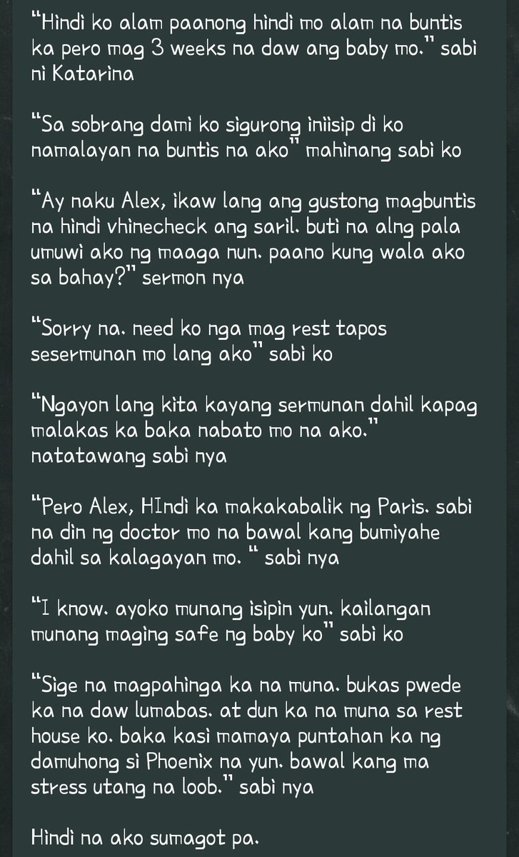 Huwag mo akong i-give up please iyong ang sabi niya sa akin medyo gumaan ang pakiramdam ko at nahimasmasan ako. Hindi ako nagagalit Wala akong karapatan. Hindi katulad ng magiging asawa mo.